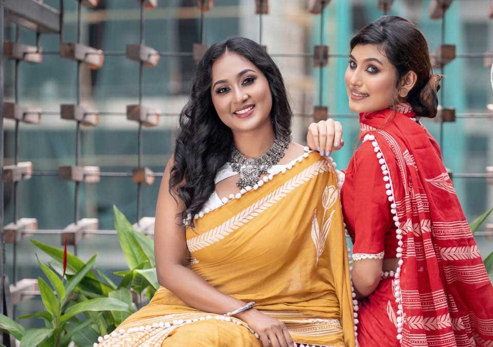 মুসাররাত নওশাবা রাইজিংবিডিকে বলেন, ‘যাবতীয় ক্লদিংয়ের প্রিন্ট মাধ্যম যেমন উড ব্লকপ্রিন্ট, স্ক্রিন প্রিন্ট ও ডিজিটাল প্রিন্ট নিয়ে কাজ করছি। তবে বেশ কিছু ফিউশন কাজও করা হয়েছে। যেমন উড ব্লকপ্রিন্টের সাথে হাতের কাজ।’