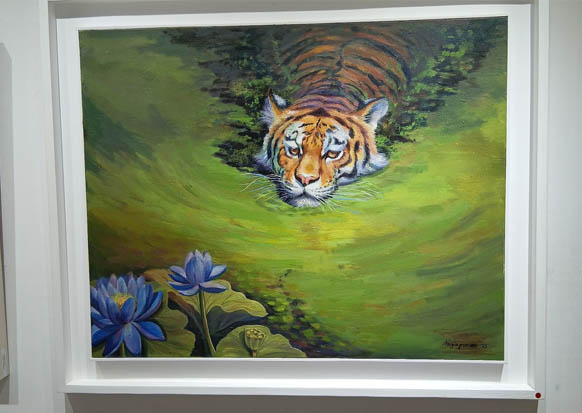 শিল্পী নার্গিস আক্তার পুনমের চিত্রকর্মে স্থান পেয়েছে সুন্দরবনের ক্যাকটাস আর বাঘ।