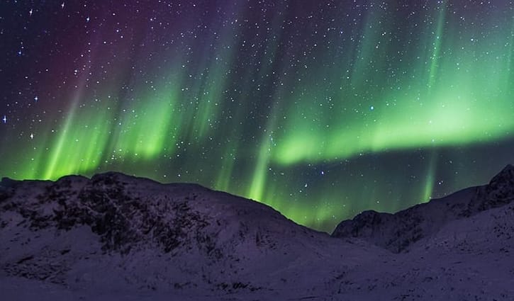 গ্রিনল্যান্ডে শীতকালে রাতের আকাশে নানা রঙ দেখা যায়