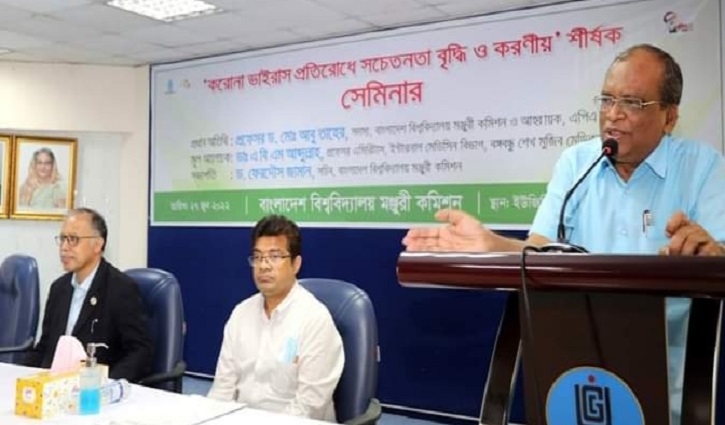 সোমবার (২৭ জুন) বিশ্ববিদ্যালয় মঞ্জুরি কমিশন (ইউজিসি) আয়োজিত ‘করোনাভাইরাস প্রতিরোধে সচেতনতা বৃদ্ধি ও করণীয়’ শীর্ষক সেমিনারে মূল আলোচকের বক্তব্যে অধ্যাপক ডা. এবিএম আব্দুল্লাহ এসব কথা বলেন।