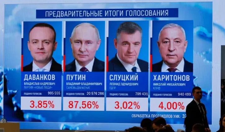 রয়টার্সের প্রতিবেদনে বলা হয়, পুতিন ইতিমধ্যে রাজধানী মস্কোতে বিজয় ভাষণ দিয়েছেন। পুতিন তার সমর্থকদের বলেন, ইউক্রেনে রাশিয়ার বিশেষ সামরিক অভিযান-সংশ্লিষ্ট বাকি কাজগুলোর সমাধানকে অগ্রাধিকার দেবেন তিনি। রাশিয়ার সামরিক বাহিনীকে তিনি শক্তিশালী করবেন।