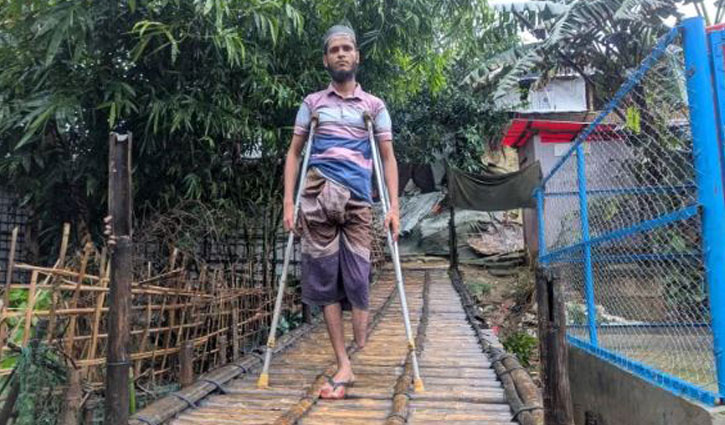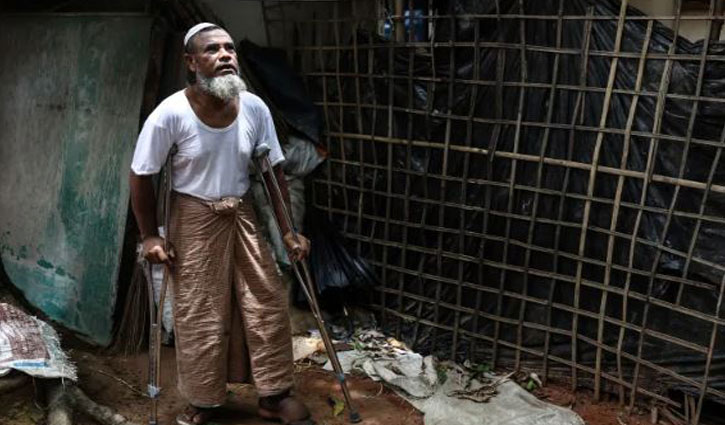 ল্যান্ডমাইনে পা হারান আনোয়ার শাহ। তিনি কক্সবাজার রোহিঙ্গা ক্যাম্পে থাকেন এখন
