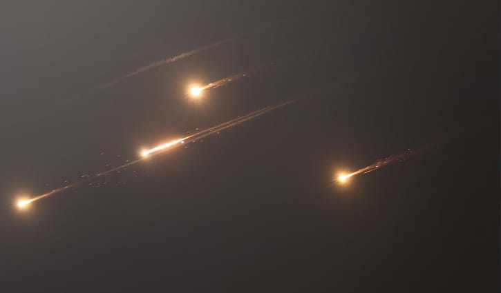 ইসরায়েলের চ্যানেল ১২ জানিয়েছে, তাদের আকাশ প্রতিরক্ষা ব্যবস্থা ধেয়ে আসা ক্ষেপণাস্ত্রগুলো প্রতিহত করছে।