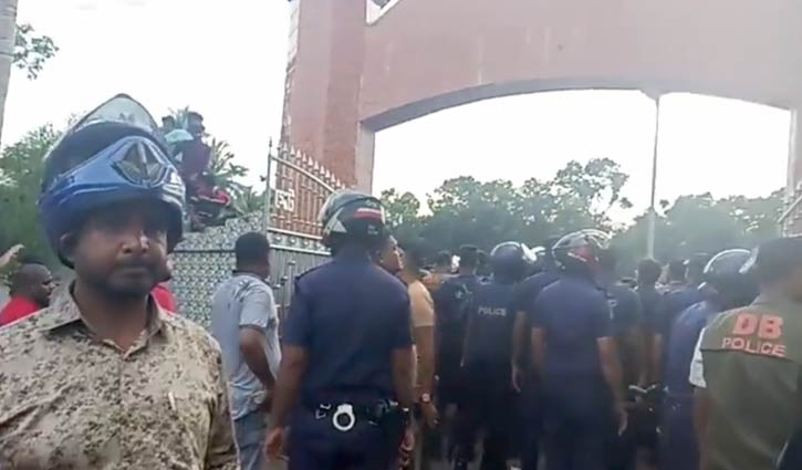 সাতক্ষীরার পুলিশ সুপার কাজী মনিরুজ্জামান বলেন, ‘বর্তমানে পরিস্থিতি নিয়ন্ত্রণে রয়েছে। পরিস্থিতি শান্ত করতে দুইজন শিক্ষককে পুলিশ হেফাজতে নেওয়া হয়েছে। ঘটনাস্থলে অতিরিক্ত পুলিশ মোতায়েন করা হয়েছে।’