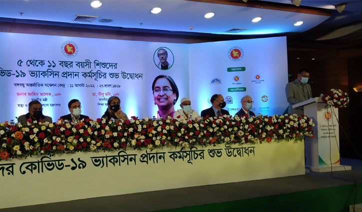 বৃহস্পতিবার (১১ আগস্ট) বঙ্গবন্ধু আন্তর্জাতিক সম্মেলন কেন্দ্রে ৫-১১ বছরের শিশুদের করোনা টিকা প্রদান কর্মসূচির উদ্বোধনী অনুষ্ঠানে প্রধান অতিথির বক্তব্যে এসব কথা বলেন স্বাস্থ্যমন্ত্রী।