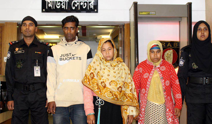 র্যাবের হাতে গ্রেপ্তার তিন ব্যক্তি। ছবি: র্যাব