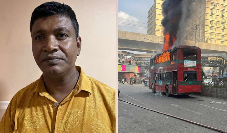 মিরপুরে বাসে আগুন, স্বেচ্ছাসেবক দলের নেতা আটক