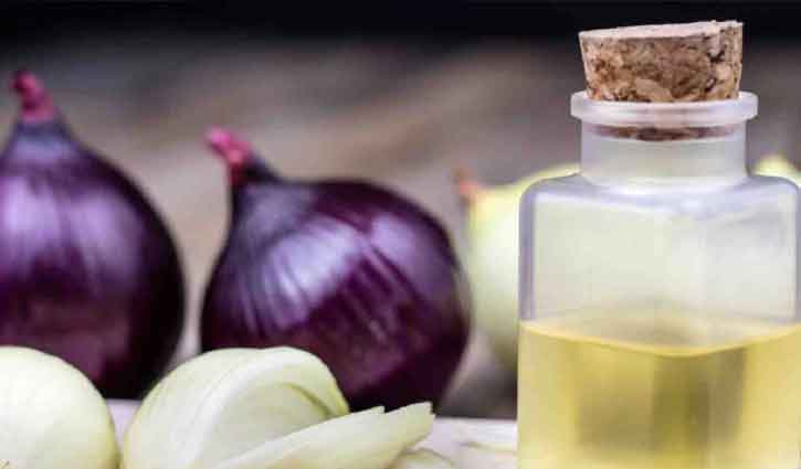 পেঁয়াজের রস: পেঁয়াজের রসে অ্যান্টি-ব্যাকটেরিয়াল এবং অ্যান্টিফাঙ্গাল উপাদান আছে। আরও আছে ভিটামিন সি ও ভিটামিন বি৬। ভিটামিন সি খুশকির সমস্যা কমাতে সাহায্য করে। এর জন্য বড় একটি পেঁয়াজ নিন। প্রথমে খোসা ছাড়িয়ে পেঁয়াজটি টুকরা টুকরা করে কেটে গ্রাইন্ডারে পেস্ট বানান। সেই পেস্ট থেকে রস ছেঁকে বের করে নিন। তা আঙুলের সাহায্য়ে স্ক্যাল্পে লাগিয়ে নিতে হবে। এতে স্ক্যাল্পে রক্ত সঞ্চালন বাড়বে। পাশাপাশি খুশকির সমস্যাও কমে যাবে। পেঁয়াজের রস চুলে দিয়ে আধা ঘণ্টা অপেক্ষা করে শ্যাম্পু করতে হবে। সপ্তাহে ১-২বার পেঁয়াজের রস ব্যবহার করে ভালো ফল পেতে পারেন।