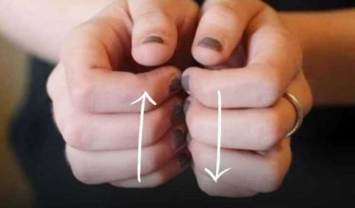 বৃদ্ধা আঙুল বাদে ডান হাতের আঙুলগুলোর সামনে বাম হাতের আঙুলগুলো সমান্তরালে রাখুন। এরপরে এক হাতের নখ দিয়ে অন্য হাতের নখ আস্তে আস্তে ঘষতে থাকুন।
