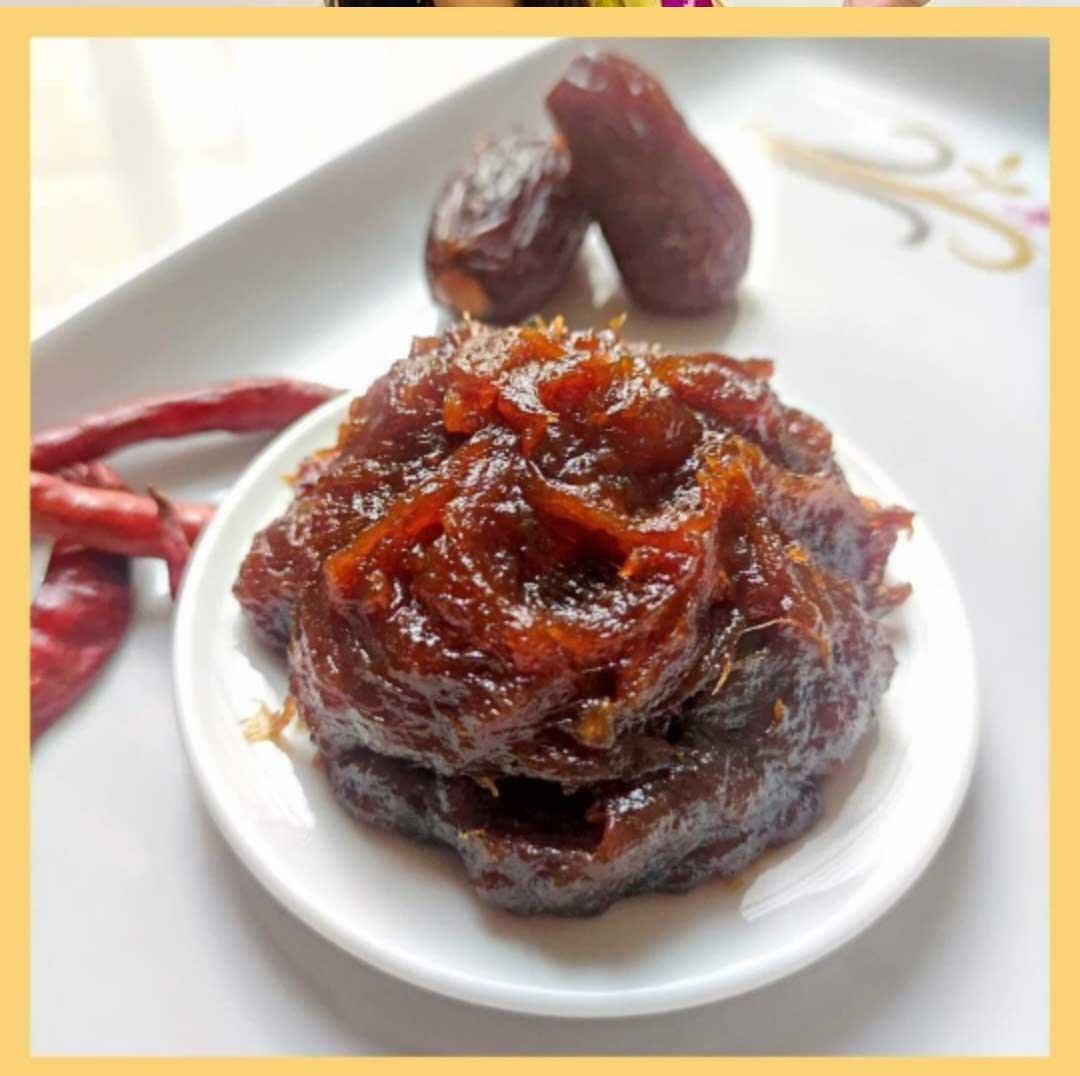 উপকরণ: আধা কেজি খেজুর, আধা কেজি তেঁতুল, এক চা চামচ রসুন গ্রেড করা, এক চামচ চা আদা গ্রেড করা, দুইটি তেজপাতা, দুইটি শুকনো মরিচ, আধা চা-চামচ পাঁচফোড়ন, এক কাপ সরিষার তেল, আধা কাপ চিনি, দুই চা চামচ মরিচ গুঁড়া, তিন চার টেবিল চামচ ভিনেগার, স্বাদমতো লবণ, পরিমাণমতো বিটলবণ এবং চিলি ফ্লেক্স।
