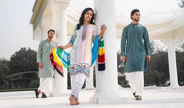 ঈদ মানেই নতুন পোশাক, নতুন সাজ আর প্রিয়জনদের সঙ্গে আনন্দ ভাগাভাগি। সময়ের সঙ্গে সঙ্গে ঈদ উদযাপনের প্রধান অনুষঙ্গ হয়ে উঠেছে উৎসবের পোশাক। পরিবারের প্রত্যেক সদস্যের পছন্দ আলাদা—কেউ ভালোবাসেন গাঢ় রং, কেউবা নরম নিউট্রাল টোন; কারও পছন্দ ঐতিহ্য, কারও ঝোঁক আধুনিকতার দিকে। এই বৈচিত্র্যময় ইচ্ছেগুলো মিলেই তৈরি হয় ঈদের ফ্যাশনের এক রঙিন মোজাইক।