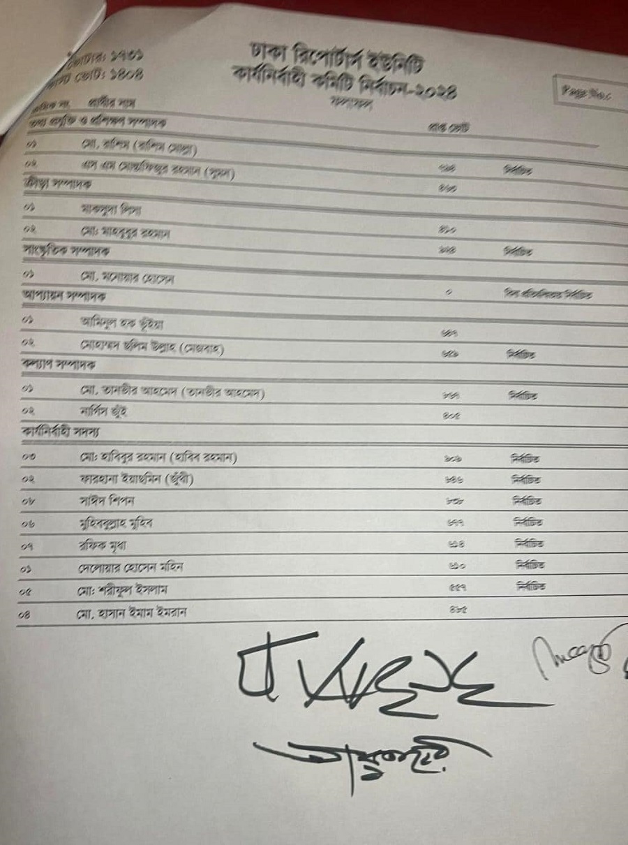 অন্যদিকে, কার্যনির্বাহী সদস্যের সাতটি পদের জন্য প্রার্থী ছিলেন আট জন। এতে নির্বাচিত সাত জন হলেন- হাবিবুর রহমান (৯০৯), ফারহানা ইয়াছমিন জুঁথী (৮৪৬), সাঈদ শিপন (৮৩৮), মুহিববুল্লাহ মুহিব (৬৭৭), রফিক মৃধা (৬১৪), দেলোয়ার হোসেন মহিন (৬১০), শরীফুল ইসলাম (৫৫৭)।