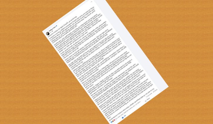 সোমবার (১০ নভেম্বর) নিজের ভেরিফায়েড ফেসবুক অ্যাকাউন্ট থেকে এক পোস্টে তিনি এই অভিযোগ করেন। নিচে প্রেস সচিবের ফেসবুক স্ট্যাটাসটি পাঠকদের জন্য হুবহু তুলে ধরা হলো-