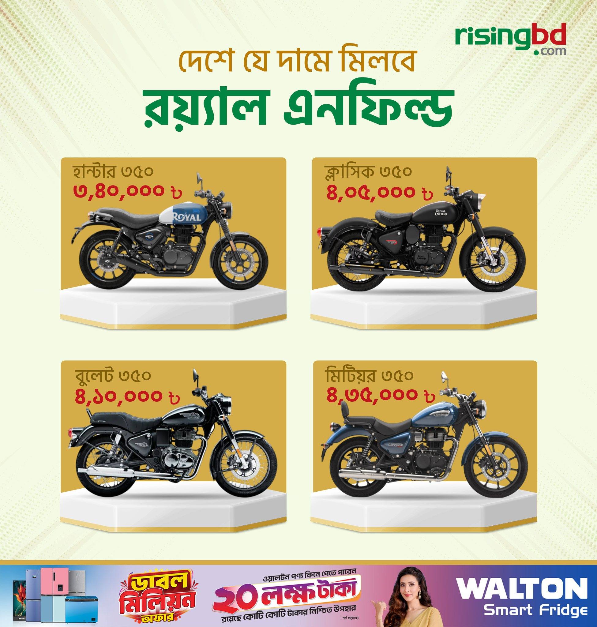 ক্লাসিক ৩৫০-এর দাম শুরু হয়েছে ৪.০৫ লাখ টাকা থেকে, আর বুলেট ৩৫০-এর মূল্য শুরু হয়েছে ৪.১০ লাখ টাকা থেকে। হাইওয়ে রাইডারদের প্রিয় মিটিওর ৩৫০-এর দাম শুরু হয়েছে ৪.৩৫ লাখ টাকা থেকে।