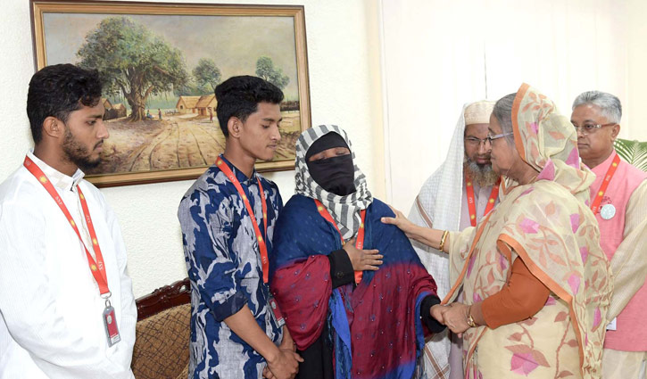 সোমবার প্রধানমন্ত্রীর সঙ্গে তাঁর কার্যালয়ে নুসরাতের বাবা একেএম মুসা, মা শিরীনা আক্তার ও দুই ভাই সাক্ষাত করেন। এনআরবি গ্লোবাল ব্যাংকের চেয়ারম্যান নিজাম চৌধুরী এ সময় উপস্থিত ছিলেন।