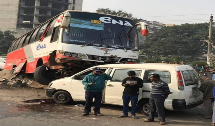 খিলক্ষেত থানার উপপরিদর্শক (এসআই) সাবরিনা রহমান মৌরি গণমাধ্যমকে বলেন, বাসটি আইল্যান্ড ভেঙে অন্য পাশে থাকা মাইক্রোবাসের ওপরে উঠে যায়। তবে এ ঘটনায় কেউ গুরুতর আহত হয়নি।
