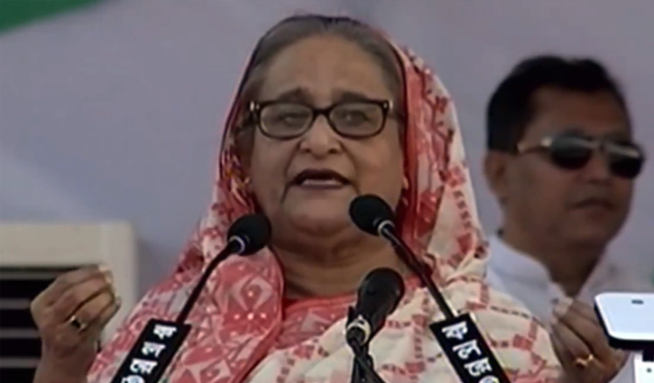 পঁচাত্তরের ১৫ আগস্টের পর জয় বাংলা স্লোগান নিষিদ্ধ ছিল। একের পর এক ক্যু হয়েছে। এর সঙ্গে জিয়া মোশতাক সবাই জড়িত। আমি বিচার চাইতে পারিনি। তারপরও সবকিছু মাথায় নিয়ে ফিরে এসেছি একটাই কারণে, এই জাতির পিতা আমার পিতা সারাজীবন সংগ্রাম করেছে। সেজন্য আমার লক্ষ্য ছিল, এই দেশের মানুষের জন্য কিছু করা। বার বার ক্ষমতায় এসেছি বলেই উন্নয়ন করা সম্ভব হয়েছে। আওয়ামী লীগ ক্ষমতায় এসে কমিউনিটি ক্লিনিক করেছে। বিনা পয়সায় ৩০ ধরনের ওষুধ পাওয়া যায়। আমরা ডিজিটাল বাংলাদেশ করে দিয়েছি। বিএনপি দিয়েছে অস্ত্র, খুন, হত্যা। শুধু হত্যা আর খুন ছাড়া কিছু দিতে পারেনি বিএনপি। মানুষের ভাগ্য ছিনিমিনি খেলেছে। জিয়া যখন মারা যায়, কিছু রেখে যায়নি। ভাঙা বাক্স আর ছেঁড়া গেঞ্জি ছাড়া।