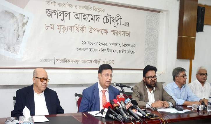 মঙ্গলবার (২৯ নভেম্বর) জাতীয় প্রেস ক্লাবে তফাজ্জল হোসেন মানিক মিয়া হলে সাংবাদিক জগলুল আহমেদ চৌধুরী স্মৃতি ট্রাস্ট আয়োজিত জগলুল আহমেদ চৌধুরীর অষ্টম মৃত্যুবার্ষিকী উপলক্ষে আয়োজিত স্মরণসভায় তিনি এই মন্তব্য করেন।