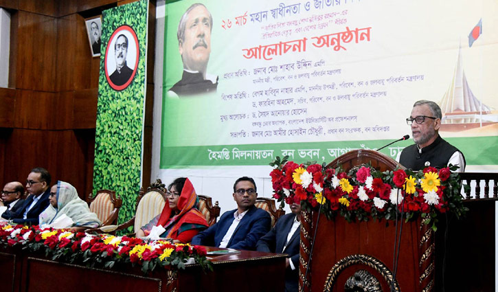 রোববার (২৬ মার্চ) মহান স্বাধীনতা ও জাতীয় দিবস উপলক্ষে বন অধিদপ্তরে আয়োজিত ‘জাতির পিতা বঙ্গবন্ধু শেখ মুজিবুর রহমানের ঐতিহাসিক নেতৃত্ব এবং দেশের উন্নয়ন' শীর্ষক আলোচনা অনুষ্ঠানে প্রধান অতিথির বক্তব্যে তিনি এসব কথা বলেন।