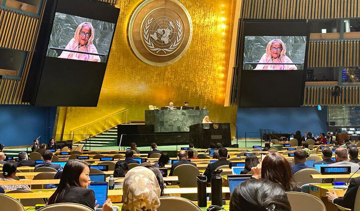 নিউ ইয়র্কে জাতিসংঘের সাধারণ পরিষদের ৭৮তম অধিবেশনে ভাষণ দেন প্রধানমন্ত্রী শেখ হাসিনা