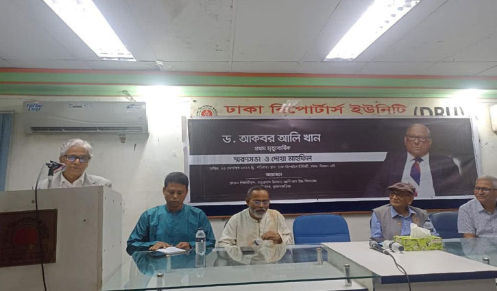 শনিবার বিকেলে রাজধানীর সেগুনবাগিচায় ঢাকা রিপোর্টার্স ইউনিটির (ডিআরইউ) সাগর-রুনি মিলনায়তনে প্রখ্যাত অর্থনীতিবিদ ড. আকবর আলি খানের প্রথম মৃত্যুবার্ষিকী উপলক্ষে আয়োজিত এক স্মরণসভা ও দোয়া মাহফিলে তারা এসব কথা বলেন। ব্রাহ্মণবাড়িয়ার নবীনগরের রসুল্লাবাদ উলফত আলী খান উচ্চ বিদ্যালয়ের প্রাক্তন শিক্ষার্থীরা এর আয়োজন করেন।