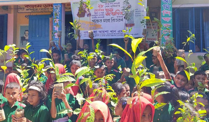 প্রধানমন্ত্রী শেখ হাসিনার ৭৭তম জন্মদিন উপলক্ষে শিক্ষার্থীদের মাঝে গাছের চারা বিতরণ করেছেন আওয়ামী লীগের অর্থ ও পরিকল্পনা বিষয়ক সম্পাদক এবং বিদ্যুৎ, জ্বালানি ও খনিজ সম্পদ মন্ত্রণালয় সম্পর্কিত সংসদীয় স্থায়ী কমিটির সভাপতি ওয়াসিকা আয়শা খান এমপি।