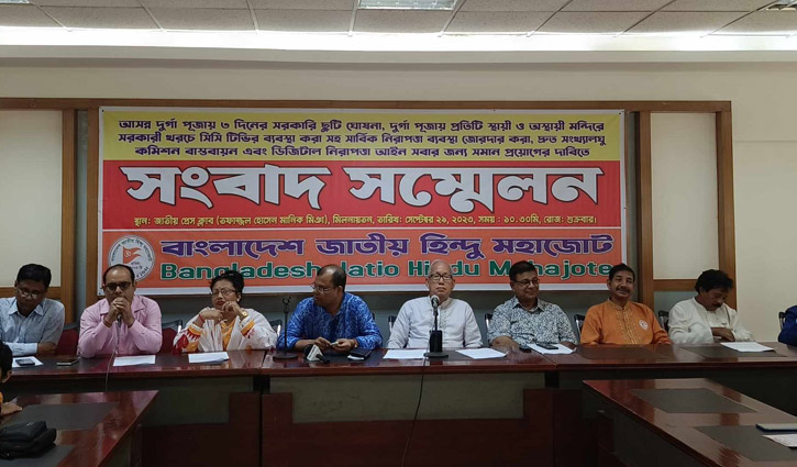 শুক্রবার (২৯ সেপ্টেম্বর) জাতীয় প্রেস ক্লাবের মিলনায়তনে আয়োজিত সংবাদ সম্মেলনে এ দাবি জানায় সংগঠনটি। পাশাপাশি দুর্গাপূজায় ৩ দিনের সরকারি ছুটি ঘোষণা, দ্রুত সংখ্যালঘু কমিশন বাস্তবায়ন এবং ডিজিটাল নিরাপত্তা আইন সবার জন্য সমান প্রয়োগের দাবিও জানানো হয় সংবাদ সম্মেলনে।