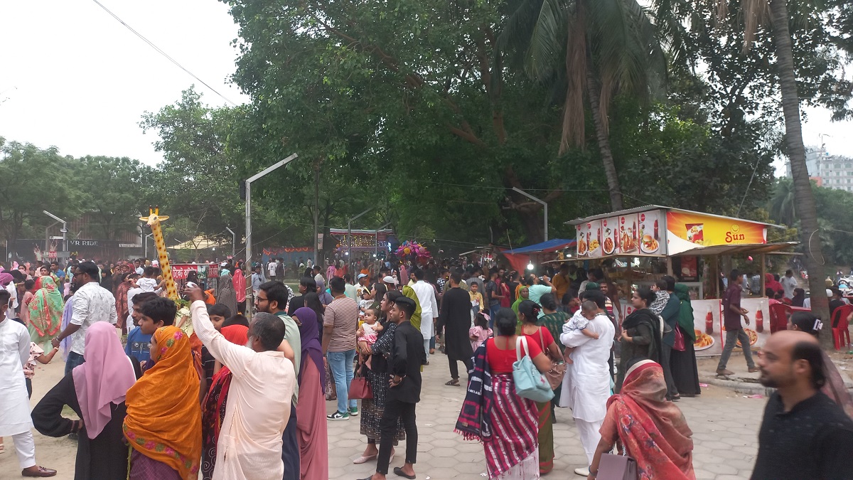 ঈদের দ্বিতীয় দিনেও রাজধানীবাসী বেড়িয়েছেন ঘুরতে। বিভিন্ন বিনোদনকেন্দ্রে ঘুরছেন পরিবারের সদস্যদের নিয়ে। বিনোদনকেন্দ্রগুলোতে দর্শনার্থীদের উপচেপড়া ভিড় লক্ষ্য করা গেছে। যদিও জুমার দিনের দুপুরে ভিড় অনেকটা কম ছিল। বেলা বাড়ার সঙ্গে সঙ্গে বিনোদনকেন্দ্রগুলোতে দর্শনার্থীদের ঢল নামে। সংশ্লিষ্টদের সঙ্গে কথা বলে জানা গেছে, সকালে তারা অলস সময় পার করেছেন। তবে বেলা বাড়ার সাথে সাথে দর্শনার্থীদের চাপে হিমশিম খাচ্ছেন।