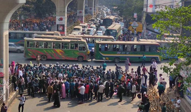 সোমবার (১৭ ফেব্রুয়ারি) দুপুর ২টার দিকে শাহবাগ মোড়ে বাংলামোটর অভিমুখী লেন অবরোধ করলে ওই পথে যান চলাচল বন্ধ হয়ে যায়।