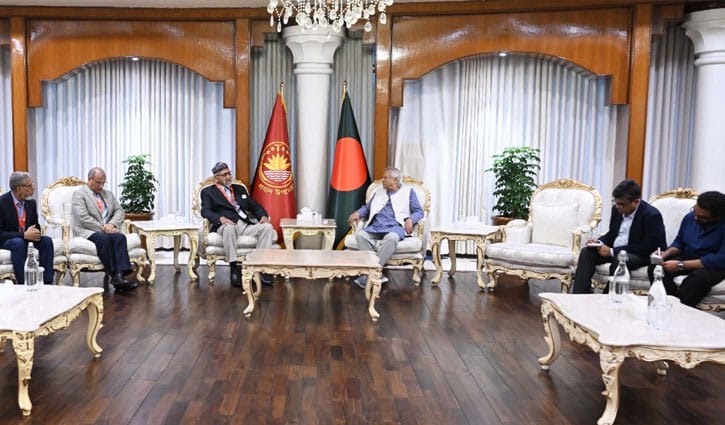 রাষ্ট্রীয় অতিথি ভবন যমুনায় বুধবার প্রধান উপদেষ্টার সঙ্গে সাক্ষাৎ করেন বিডিআর বিদ্রোহ হত্যাকাণ্ড তদন্ত কমিশনের সদস্যরা। ছবি: পিআইডি