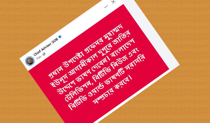 প্রধান উপদেষ্টার প্রেস উইং জানিয়েছে, আগামীকাল দুপুরে প্রধান উপদেষ্টা এ ভাষণ দেবেন। বাংলাদেশ টেলিভিশন, বিটিভি নিউজ ও বিটিভি ওয়ার্ল্ড ভাষণটি সরাসরি সম্প্রচার করবে।