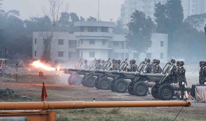 মহান বিজয় দিবস-২০২৫ উদযাপন উপলক্ষে মঙ্গলবার (১৬ ডিসেম্বর) সূর্যোদয়ের সাথে সাথে ৩১ বার তোপধ্বনির মধ্য দিয়ে শুরু হয় মহান বিজয় দিবসের আনুষ্ঠানিকতা।