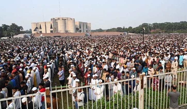 জানাজায় অংশ নিতে জাতীয় সংসদ ভবনের দক্ষিণ প্লাজায় হাজারো মানুষের ঢল।