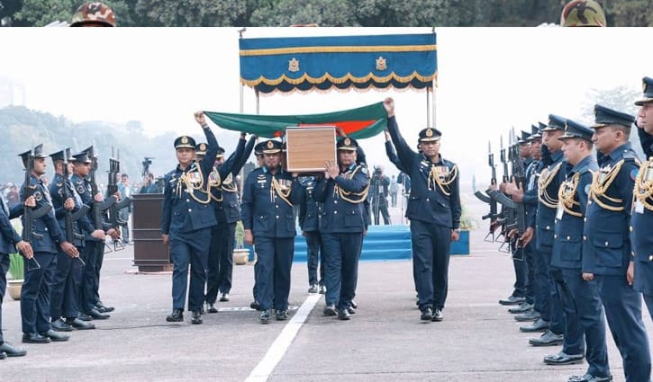 বাংলাদেশ বিমান বাহিনী ঘাঁটি বাশার প্যারেড গ্রাউন্ডে রবিবার (২১ ডিসেম্বর) তার নামাজে জানাজা অনুষ্ঠিত হয় এবং গার্ড অব অনার প্রদান করা হয়। অন্তর্বর্তী সরকারের প্রধান উপদেষ্টা প্রফেসর মুহাম্মদ ইউনূস অনুষ্ঠানস্থলে উপস্থিত থেকে তার কফিনে পুষ্পস্তবক অর্পণ করে তার প্রতি শ্রদ্ধাজ্ঞাপন করেন।