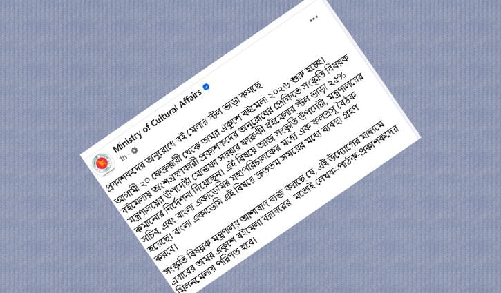 সংস্কৃতি মন্ত্রণালয়ের দেওয়া ফেসবুক পোস্ট