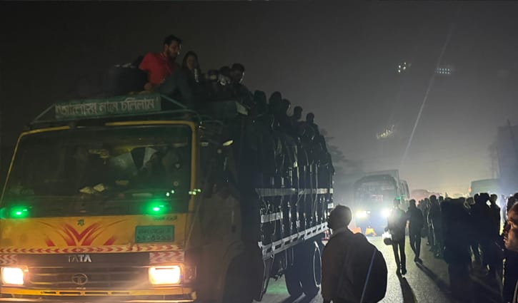 শ্রমিকরা জানান, ভোটের ছুটিতে ভোট দিতে তারা বাড়ি যাচ্ছেন। সন্ধ্যার পর থেকে দীর্ঘসময় অপেক্ষা করেও কাঙ্ক্ষিত যানবাহন ধরতে পারছিলেন না। ফলে অনেকেই ট্রাক, পিকআপেও ফিরছেন বাড়িতে। সন্ধ্যার পর যাত্রীর চাপ থাকলেও রাত ৯টার পর থেকে যানজট লেগে যায়।