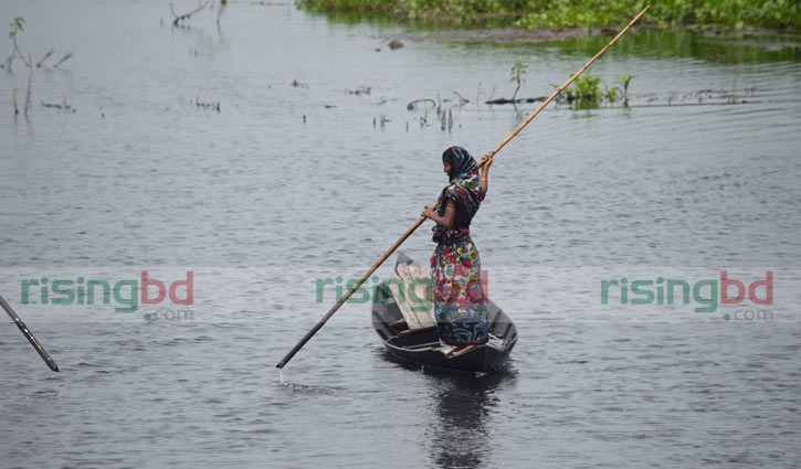 পরিবারের প্রয়োজনে নৌকার হাল ধরেছে নারী। কৃষিকাজ, গোখাদ্য সংগ্রহ থেকে পরিবারের হেন কাজের সমান অংশীদার গ্রামের নারীরা।