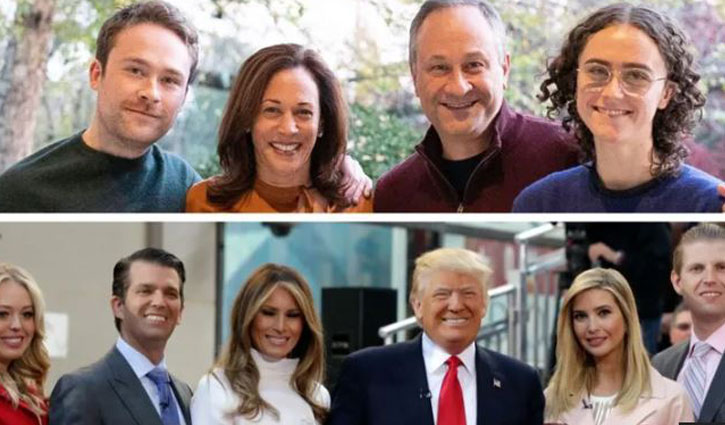 পরিবারের সদস্যদের সঙ্গে কমলা হ্যারিস ও ডোনাল্ড ট্রাম্প