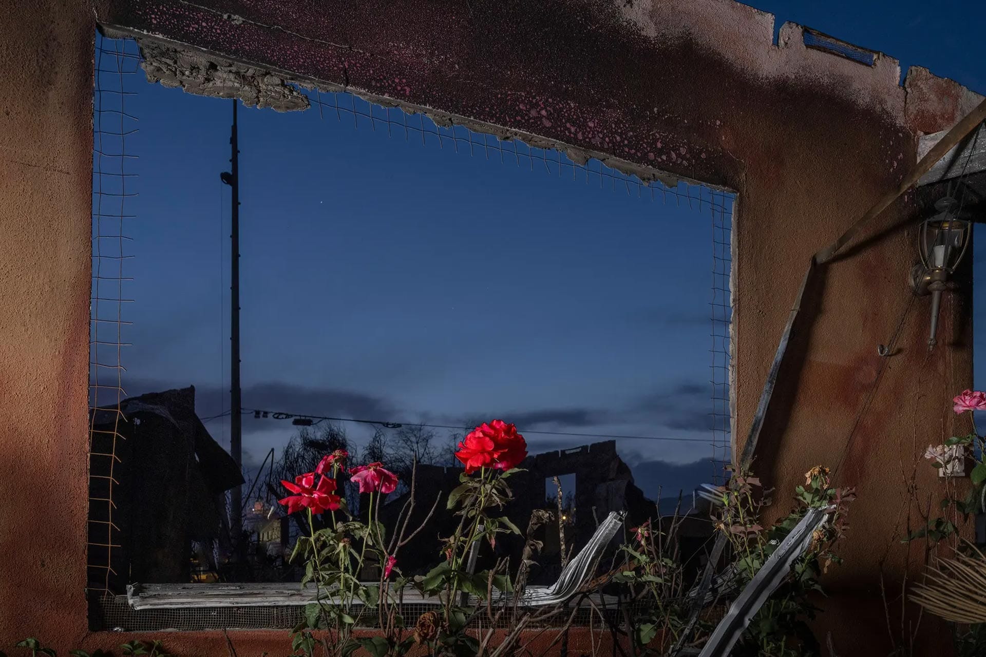 যুক্তরাষ্ট্রের ক্যালিফোর্নিয়ার ইটন অগ্নিকাণ্ডের পরের মাসে আলতাডেনার জেনস ভিলেজ এলাকার হ্যারিয়েট স্ট্রিটের একটি বাড়ির ধ্বংসস্তূপের মধ্যে গোলাপ ফুলগুলো ফুটে ছিল। এই গোলাপ ফুলগুলো ছিল পুনর্জাগরণের প্রথম দিকের দৃশ্য। এত বিশাল ক্ষতির মাঝেও প্রকৃতির ফিরে আসার ইচ্ছা পুরো সম্প্রদায়ের কাছে আশার প্রতীক হয়ে ওঠে। ছবি: কেভিন কুলি