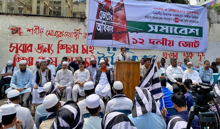 গণতন্ত্র ও ভোটাধিকার পুনরুদ্ধার, নির্দলীয় তত্ত্বাবধায়ক সরকারের অধীনে নির্বাচন, ‘অবৈধ’ সরকারের পদত্যাগসহ ১০ দফা দাবি বায়স্তবানে যুগপৎ আন্দোলনের অংশ হিসেবে প্রতিবাদ সমাবেশ করেছে ১২ দলীয় জোট।