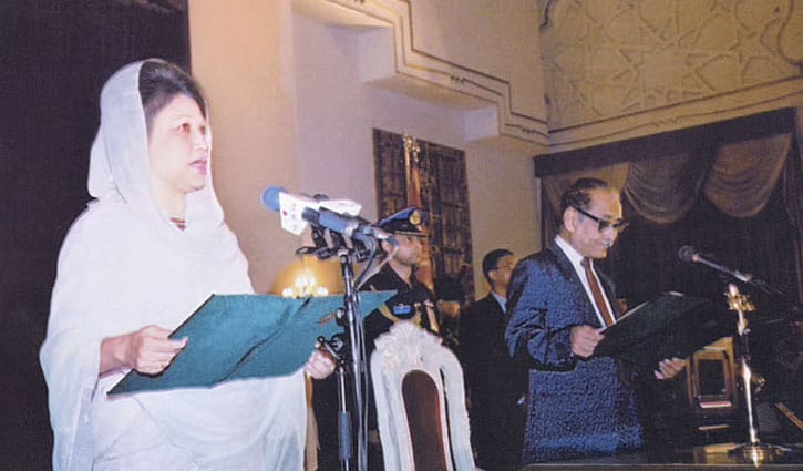 ২০০১ সালে নির্বাচনে জয়ের পর তৃতীয়বার প্রধানমন্ত্রী হিসেবে শপথ নেন খালেদা জিয়া।
