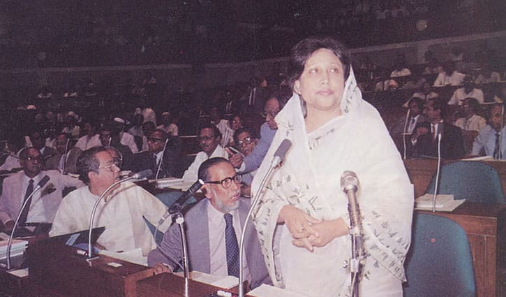 ২০০১ সালে সরকার গঠনের পর জাতীয় সংসদে বক্তৃতায় প্রধানমন্ত্রী খালেদা জিয়া।