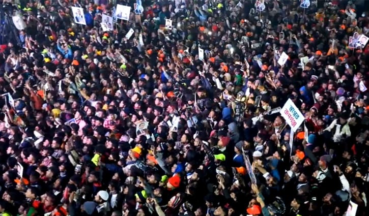 নারায়ণগঞ্জের আড়াইহাজারে ভোর রাতে নির্বাচনি জনসভায় বিএনপির হাজার হাজার নেতাকর্মী। শুক্রবার ভোর ৪টার অবস্থা। ছবি: ভিডিও থেকে নেওয়া।