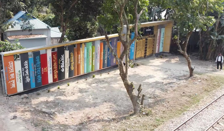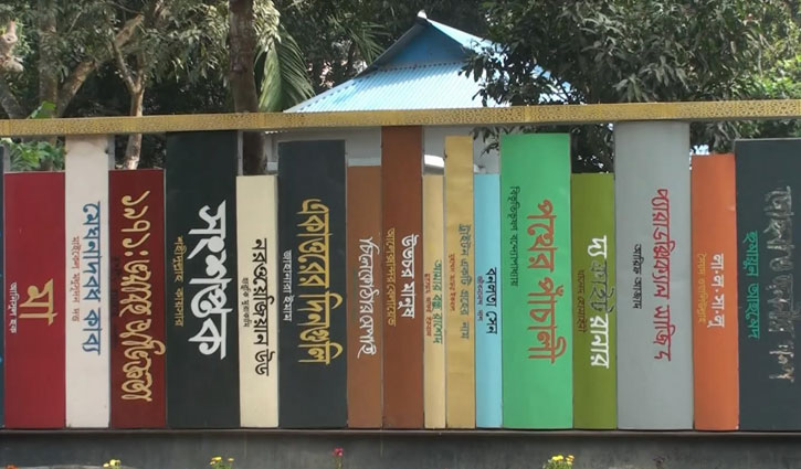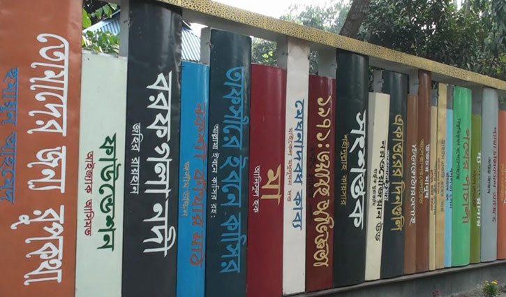 বইয়ের প্রতি আকৃষ্ট করতে মোড়কের আদলে তৈরি সীমানা প্রাচীর