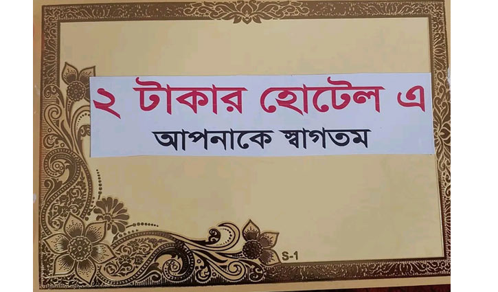 সপ্তাহে যে কোনো দুইদিন এই হোটেলে নামমাত্র দুই টাকা দিয়ে অসহায় ও শ্রমজীবী মানুষ পেটপুরে খেতে পারেন। বাড়িতে রান্না করা সাদা ভাত, সাথে গরু ও মুরগির মাংস, ডাল বা মুড়িঘন্ট, কখনও রুটি, আবার কোনো দিন ইলিশ খিচুরি- এই আয়োজন করা হয় ৬০ থেকে ৭০ জন মানুষের জন্য। আয়োজকরা তাদের বলেন ‘অতিথি’। এই অতিথিদের জন্য রয়েছে নিমন্ত্রণপত্র। অর্থাৎ তারা অসহায় মানুষ দেখে নিমন্ত্রণপত্র দেন এবং দুই টাকার হোটেলে নিমন্ত্রণ জানান।
