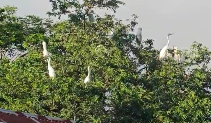 শিক্ষক আখতার হোসেনের বাড়ির গাছে বসবাস করছে বিভিন্ন প্রজাতির পাখি
