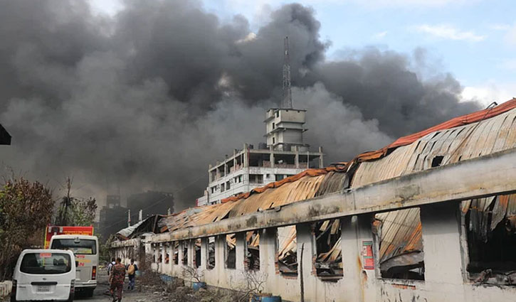 দুর্বৃত্তদের দেওয়া আগুনে পুড়ে গাজী টায়ার্স কারখানা। সাম্প্রতিক ছবি