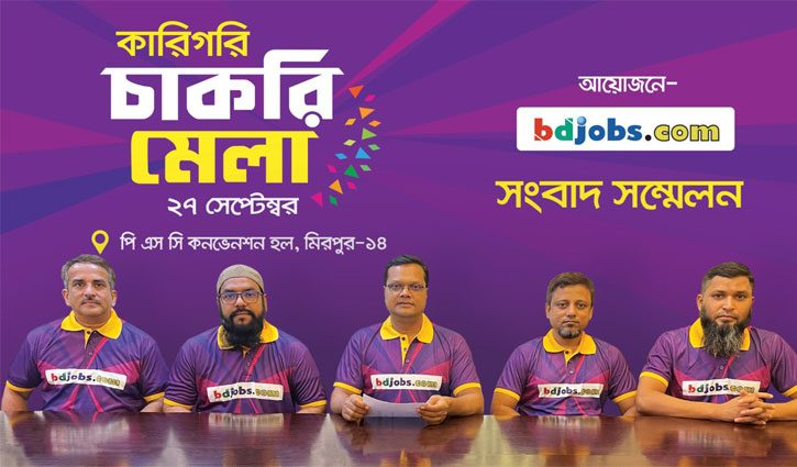 দেশের শীর্ষস্থানীয় ৬০টি কোম্পানিতে ৫ হাজারের অধিক লোকবল নিয়োগের উদ্দেশ্যে ঢাকায় কারিগরি চাকরি মেলার আয়োজন করেছে বিডিজবস ডটকম।
