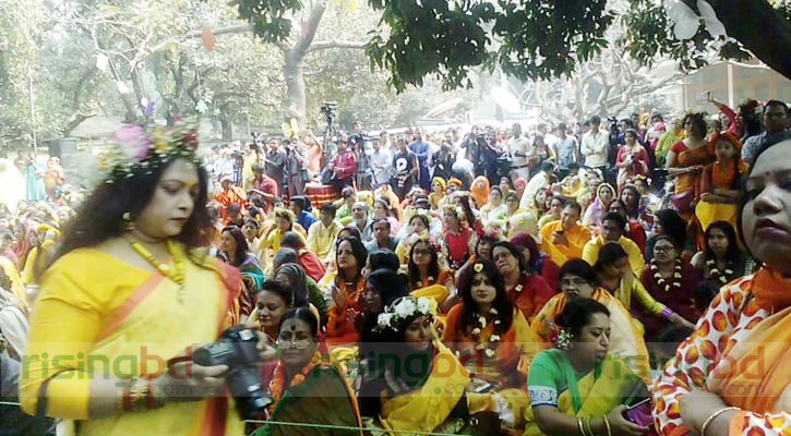 বসন্তের প্রথম দিনের উৎসবে রঙিন হয়ে উঠেছে রাজধানী। ঢাকা বিশ্ববিদ্যালয়ের চারুকলা ইনস্টিটিউট চত্বর ও আশপাশের এলাকায় সকাল থেকে দল বেঁধে আসতে থাকে তরুণ-তরুণীসহ নানা বয়সি মানুষ। বাসন্তী রঙে বাহারি সাজে ফাল্গুনকে বরণ করে নেয় তারা। যেদিকে চোখ যায়, হলুদ, সবুজ, লালে ছেয়ে গেছে চারপাশ।