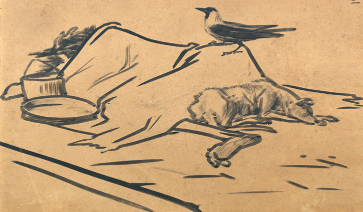 জয়নুল আবেদিনের আঁকা একটি দুর্ভিক্ষের চিত্র